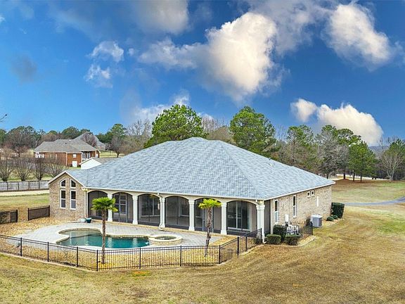 Private, unrestricted estate situated on approximately 8.8 acres, offering 3,800 square feet of living space with 4 bedrooms and 4 bathrooms. This custom-built home, features a grand foyer with beautiful mahogany door entryway, soaring ceilings, quality flooring, and coffered ceilings in both the office and formal dining room.