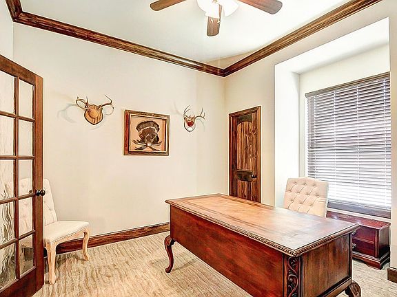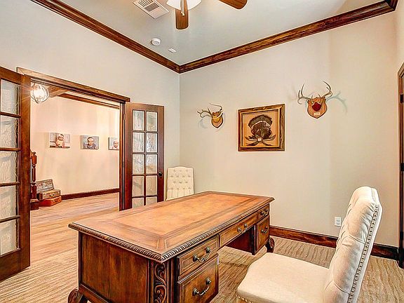 Builder's own custom home. Four bedrooms are split into 3 areas around a large open living, wonderful kitchen and separate study. Grand entry and stair case leading to a large upstairs bonus room. Upgraded trim and detailed custom wood throughout. The kitchen has granite, stainless appliances and center island overlooking the living room with fireplace and covered patio. With it's own covered back porch the oversized three car garage a has a work area and 4 x 8 above ground safe room. You'll love this one with excellent front curb appeal and a brick back fence.