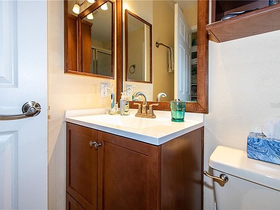 MOVE IN READY!! EXCELLENT CONDITION! 2 bedroom, 2 bath second floor end-unit condo in the beautiful community of Millpond Estates. Cathedral ceilings with tons of light! Enjoy mornings and evenings on the screen-enclosed back lanai. New paint throughout the unit. New ceiling fans and decorative lighting. Kitchen upgraded with new sink and faucet, new dishwasher, disposal and microwave, quartz counter tops. Additional cabinets added for storage in kitchen. Both baths upgraded, new vanities, sinks, mirrors and lighting. Inside laundry for full size washer and dryer plus storage. His and her closets. Elevator for easy access. Gated community. Gate closed from dusk to dawn. All ages welcome, pets are allowed. Millpond is an active clubhouse community with 2 pools-one heated open to all residents and one ONLY for this particular section. Located 15 minutes from Suncoast Parkway and short distance to beaches.