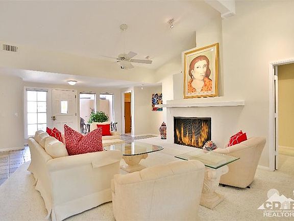 Great Indian Wells value w/dramatic unobstructed mountain views and spacious rooms This 3 bdrm- 3 bath(2 ensuite+1 off private hall) 2,208 sqft home enjoys So. exposure plus privacy! Casa Rosada, an enclave of 52 home on fee simple land (you own). ON IMPERIAL = 20% savings. GREAT floor plan for vacationing families, full time or snow birds with lots of guests. All 3 bdrms are good size w/great separation off of a spacious living room /dining area & open TV/Den area. The kitchen is large w/ spectacular mountain views out a large green house window. Kitchen island is not built-in. Liv/Din area, master suite and large patio all enjoy the same dramatic So Mt Views. A large fireplace & vaulted ceilings add architectural interest to the open living area. Interior has great natural light, is fresh & neutral. Large (almost private)pool is close but not too close ... a short stroll down the green belt. Lots of interior storage. Two car garage. Indian Wells residents enjoy great golf perks.