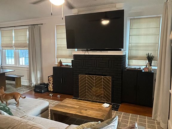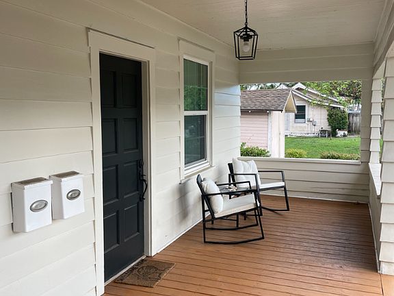 Garage for storageFully functioning fireplaceSpacious front porchWasher and dryerHardwood floorsPrivate yardWalk-in closet