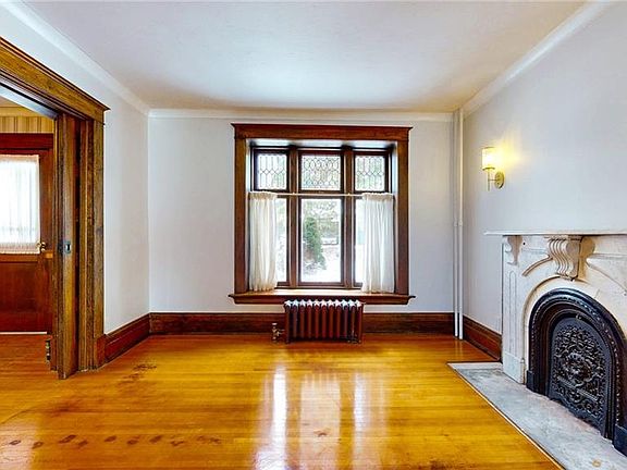 - Features: Crown Moulding, Hardwood Floor, Leaded Glass Window, Separate Room