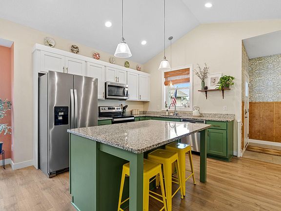 roughed-in). Situated on a quiet cul-de-sac with only the woods for your back neighbors, it’s a convenient in-town setting with a large, fully fenced backyard, comfortable front porch with park-like landscaping, and quick access to the Twin Cities, Hudson, or Osceola. This home is move-in ready with beautiful finishes, upgraded casement windows, finished basement (December 2024) with paneling, luxury carpet, and a custom-tiled gas fireplace with antique mantle. The large basement storage room, roomy mud room, and walk-in pantry make daily life a breeze with plenty of space for your people and your things. Enjoy listening to the red-winged blackbirds in the pond out front or watching the eagles soar above the woods from the peaceful owner's suite with massive window. This is a must-see!
