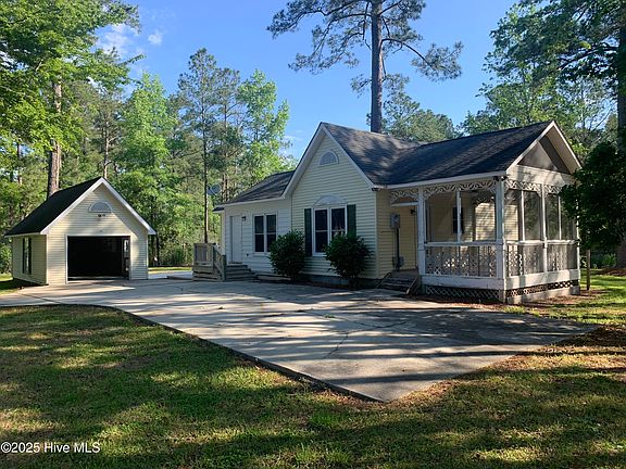 This property has a lot to offer! Come home to this freshly updated modular home sitting on 1.27 acres. New paint and flooring throughout! Relax on the screen porch or side deck and take in the nature that this lot offers. A small creek that feeds from the Bay River abuts the rear of the property. This home has plenty of storage for all of your outdoor needs with a detached garage, shed, and a covered boat/RV storage area.