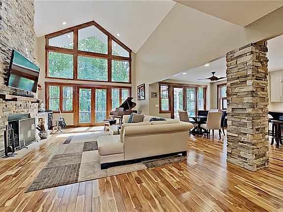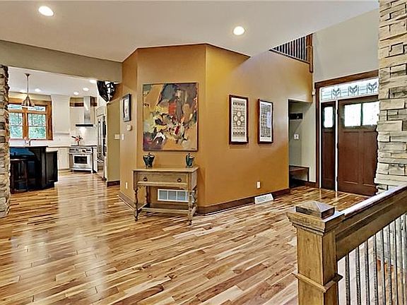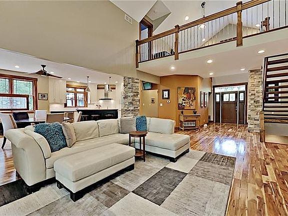The attention to detail is on display inside and outside at 453 Bellaire Road! Nestled on 1.5 level acres in coveted Bradford Woods, this seven year young home offers a striking exterior and exciting floor plan! Open living area with gorgeous Asian bistro walnut hardwood flooring. Two story entry/great room. Great room offers stone fireplace, wet bar with wine refrigerator, and wall of windows. Dining room flows into kitchen with solid surface counter tops, hi-end stainless appliances, & two-level center island. French doors to den. Main level master suite with dramatic bath included oversize soaking tub, tile shower, & walk-in closet with custom shelving. Main level also offers large laundry and walk-in pantry. Upper level loft + two fabulous bedroom suites; each with private full bath & large walk-in closet. Walk-out lower level great room, family room, home gym, huge storage room, and full bath. Potential for 4th bdrm in LL. Amazing outdoor spaces inc covered deck & brick patio!