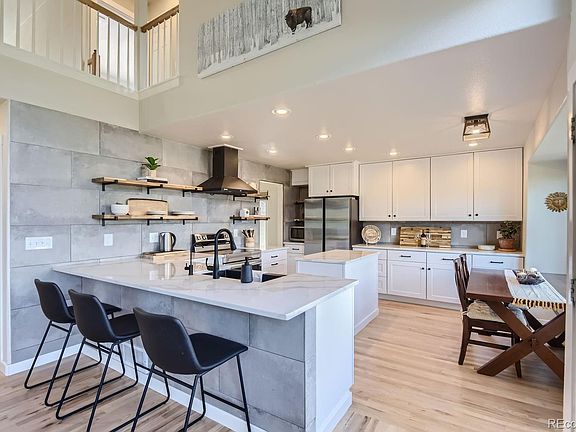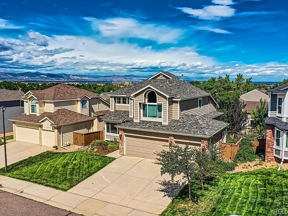 Pride of ownership abounds in this updated 4 bed/3bath home situated on a cul de sac in the heart of Highlands Ranch. Enjoy gorgeous mountain views while relaxing on the new composite deck. The home has been meticulously updated including hardwood floors, baseboards and trim, triple pane windows, new furnace, new AC, new humidifier, new electrical panel and new window coverings throughout the home. Aspiring chefs will love cooking in the contemporary kitchen with ceiling height cabinets, quartz counters, tile backsplash, farm sink, island, and stainless steel appliances. The bar seating opens to the expansive family room featuring large windows, mountain views, vaulted ceiling, and an updated fireplace accented with an acacia butcher block mantle. The living and dining room provide additional space to relax and entertain, and the main level bedroom would also be a perfect home office or den. The primary suite with a vaulted ceiling and walk in closet is privately situated upstairs. The 5 piece ensuite bath has been tastefully updated with stylish tiles, shower niche, euro door, quartz counters, oversized soaking tub, undermount sinks, and lighting fixtures. Down the hall are two spacious secondary bedrooms and a full bath. The large walk out basement awaits your personal touch. Step outside to the private backyard filled with lilacs, peonies, peach and pear trees. It's a gardener's delight with raised beds overflowing with strawberries and raspberries. Take advantage of the central location near walking trails, Bear Canyon Elementary, Civic Green Park, Town Center, the Highlands Ranch Library, and rec centers with tennis/pickleball and pools. Easy access to C470 and public transportation.