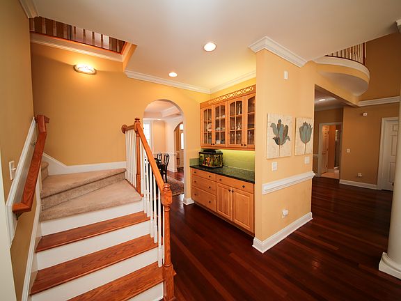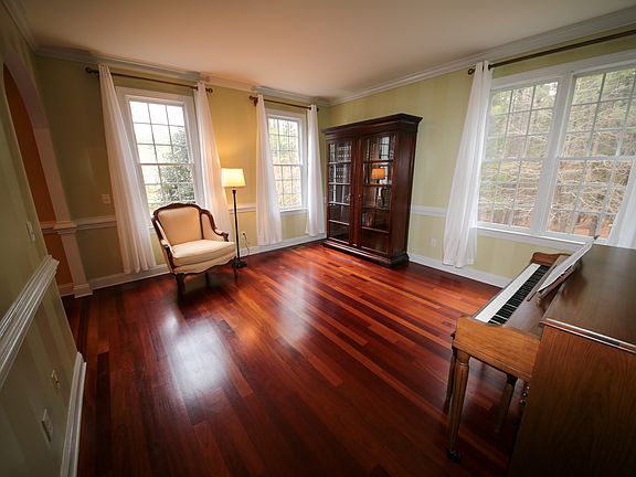 This elegant home, located on 6+ private acres, is only min's from shopping & hwys. Quality blt w/ custom detailing thru out! Enjoy the striking Brazilian cherry hardwd flring, arched doorways, blt in cabinetry, volume ceilings, scrd porch, circular driveway and 3 car gar. The kit. offers granite & solid surf counters and beautiful wd. cabinetry. Mature wds frame the back yard.