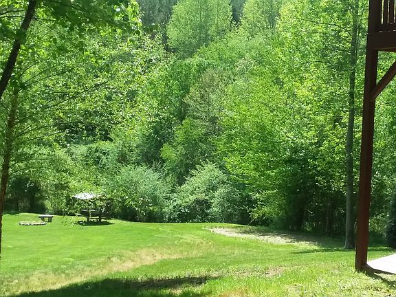 Beautiful chalet style cabin in spectacular location with meandering creek, level land, plenty of beautiful out door space. Cabin is log sided, has cheery interior, plenty of cabinet space, with a pantry, large bedroom, big closet, corner fireplace in living area, lots of windows for light, tongue and groove ceilings, plank floors. Full basement with finished bathroom, ready for 2nd bedroom, finish as you wish. Screened porch to look over the wonderful land plus open deck... attached carport. Plenty of space for a garden, covered picnic spot by creek, with fire pit. Private, yet very convenient location near golf course. Do not wait, it will not last long. Furnished. 2 bedroom septic permit