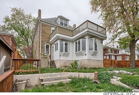 GORGEOUS RIVER VIEWS FROM THE YARD, DECK AND INTERIOR OF THIS STATELY CHRISTIAN HILL BRICK HOME. This one of a kind home was designed in the early 1900's by Lucas Pfeiffenberger, who designed dozens of mansions and public buildings in Alton. According to the owners this home was built for riverboat captain and brick similar to the Beall Mansion was brought from New Orleans. This home has wonderful natural woodwork throughout, large rooms with high ceilings, original millwork, and transom windows above many of the doors. As you enter, there is a lovely staircase and an office or sitting room with a working pocket door. The dining room has a fireplace and opens to the delightfully updated kitchen with views of the River. The kitchen has newer cabinets, an island, and granite countertops. The kitchen opens to a spacious eating area that looks out over the bluffs. The third floor could easily be finished for additional living area.