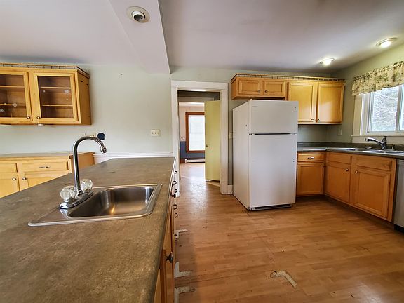 Located in Danville, VT, this home is near the k-12 school, churches, salons, bakery, sandwich shop, post office, library, Marty's 1st Stop, & The Danville Green -- the place where Danville activities happen like the Farmer's Market, The Danville Fair, Autumn on The Green, etc! Hop on the Lamoille Valley Rail Trail where you can walk, bike, snowmobile, snowshoe, or cross country ski! This spacious Colonial style home has a sunporch entry (use as your mudroom!), an open back deck for enjoying sunrises & sippin' coffee or enjoy a bbq & dinner outside. The kitchen has newer cabinets, stainless steel sink, gas range, refrigerator, dishwasher & a nice breakfast island w/sink for washing vegetables, etc. Open to the dining room, enjoy the handmade built-in hutch & large picture window overlooking the back deck & yard.. There's a large carpeted living rm w/brick fireplace & access to a light & bright glassed-in sunporch. The foyer/front entry is lg & you'll find the den & 3/4 bath off this area, then head upstairs to lg center foyer w/4 bedrms, all with closets, lots of light, newer windows, & a full bath.One bedrm has access to it's own rooftop deck!The full basement has a walkout to the back yard.The house does need cosmetics, some electrical updates, but with your own personal touches, this home has a lot to offer. Approx 30 min to Stowe & Burke Mtn ski/bike resort; 45 min to Cannon Mtn & Franconia Notch. Seller has not lived in the home. Property to be sold in as is condition.