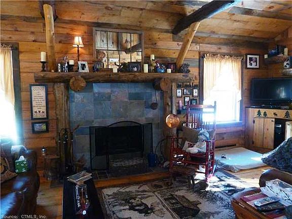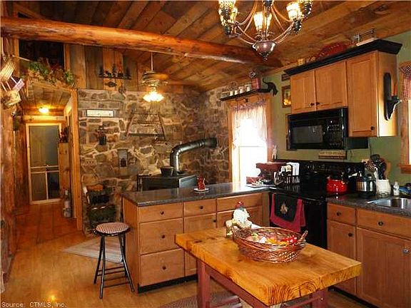 Rustic country ranch on 4.25 Acres with a pond, 2 bedrooms, with a stone wall off kitchen for wood stove. Open floor plan, built-in cabinets in dining room area.. Set back on lot very private. A must see home.