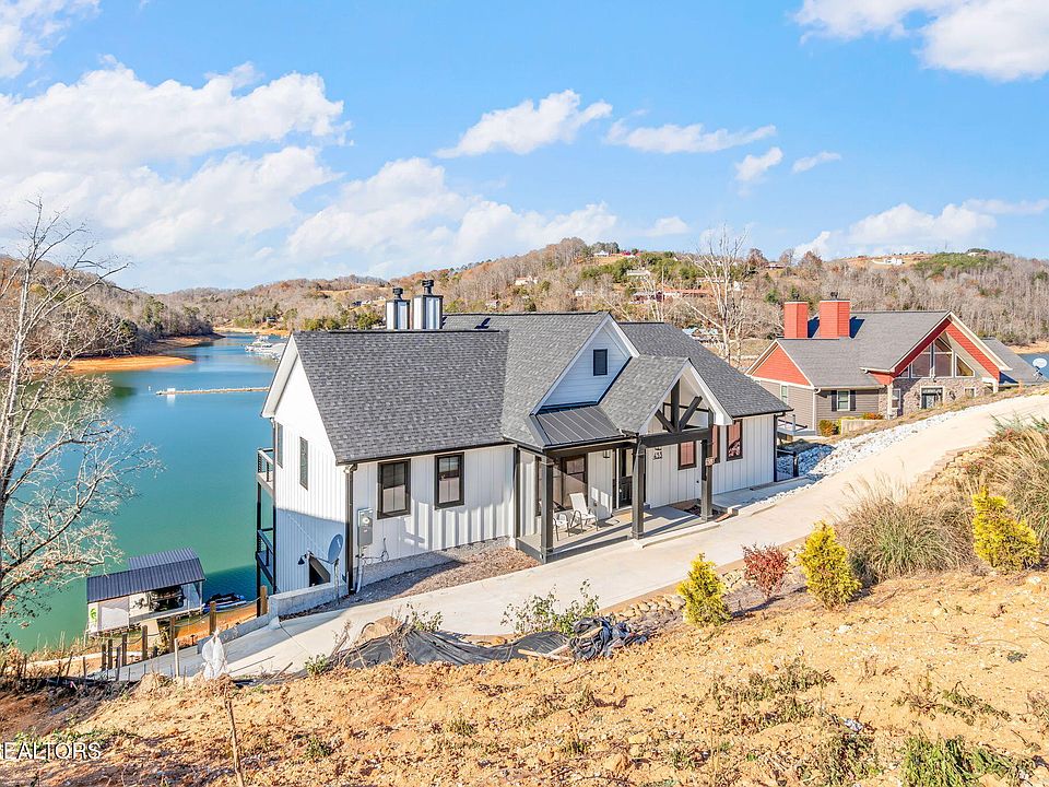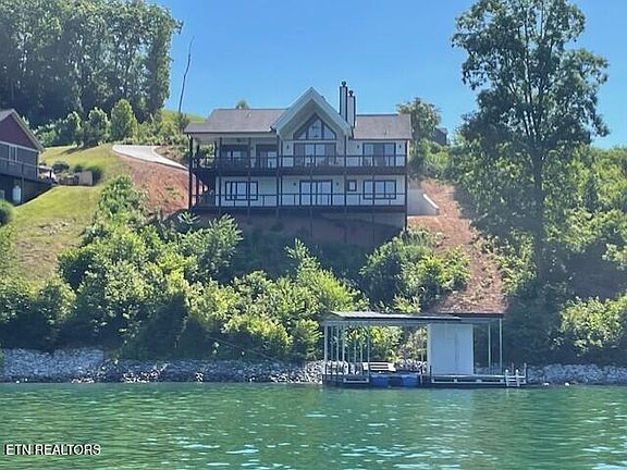 Stunning Norris Lakefront home located in the Hidden Springs Subdivision. Norris Lake Living at its Best! This custom built 3BR (with one additional room for sleeping)/ 3.5 BTH lake home has spectacular open water and mountain views. Built in 2022, this home features an open floor plan. Most rooms have a view of the lake. The main level includes a gourmet kitchen, island, wet bar, quartz counter tops, large great room with stone fireplace, 1 master bedrooms,half bath, laundry room and large covered porch with fireplace. The basement includes a rec-room , 1 additional master bedroom and 2 additional bedroom & a bathroom as well as a utility garage. Make your way to your dock with lift and jet ski port by way of concrete path to the lake . Home has not been rented but would be a great short term rental.