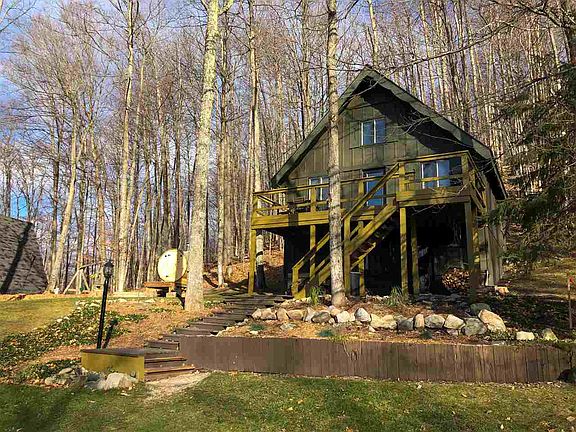Under Contract- Take advantage of the northern Michigan lifestyle from this beautifully maintained chalet in the Hidden Hamlet Association. Set on a great lot with Nubs Nob a short walk from the front door and Boyne Highlands across the street. Perfectly styled for a modern ski chalet from top to bottom with hardwood floors throughout, fully remodeled kitchen, main level with loads of natural light, wood stove, loft with 2 sleeping areas, lower level equipment and recreation area, master w/full bath, 2 full baths and new metal roof. The outdoor living area is complete with a barrel sauna, fire pit, large grass area for dogs and kids and a nice porch off the main level.