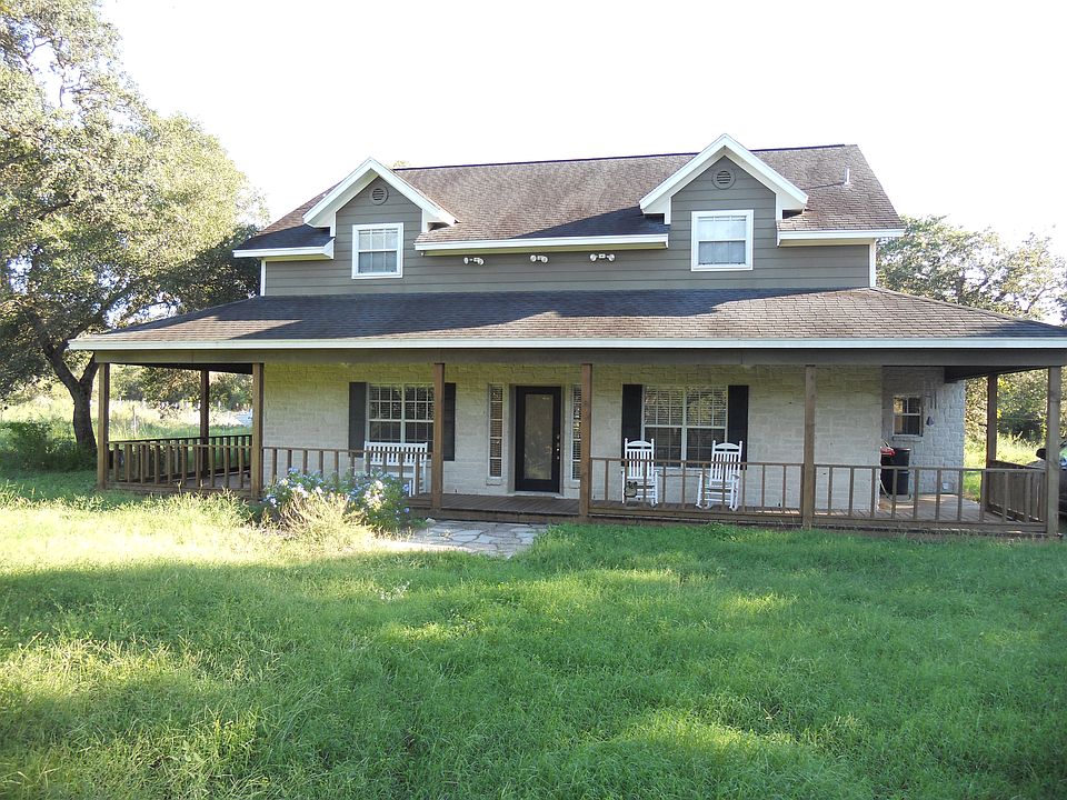 Beautiful property on a bluff overlooking Coleto Creek. One and a half story home featuring a second story Master Suite, and two identical large guest bedrooms. Each bedroom has it's own full bathroom. Vaulted ceilings with an open floor plan make this home great for company and cozy for family. Gorgeous 2 story tall stone fireplace catches the eye upon entry through the large foyer. Every room has a fresh coat of paint and the master bathroom has had a full refreshing this year. Brand new pump house features a new water softener and the wash room features a new lifetime non-metal water heater. Wrap around porch is perfect for rocking chairs and cold drinks in the summer. Large extra concrete slab held previous kennel can be used for anything you decide. Plenty of trees on the property provide privacy and the neighboring properties boast friendly and considerate neighbors. Come and see this rare find within Victoria County 10 min from downtown but outside the city tax