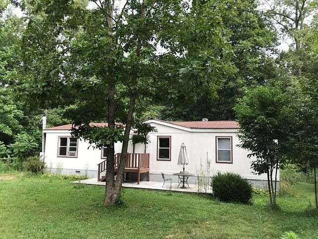 Nature lovers' haven! Persimmon, native cherry, dogwood, and red bud trees are just a few you will find on this gorgeous property. Blackberries, elderberries, wild strawberries, and herbs are also bountiful. Very well cared for 3 bed/2 bath mobile home has all new flooring throughout, storm windows, fresh paint, operational wood-burning fireplace, and open concept floor plan. Yard is fenced with large back deck to enjoy wildlife and birds galore! Creek running through property even has a trickling waterfall. Washer & dryer remain. Roof is only 2 years old. Home is on a permanent foundation w/ hurricane straps on every stud. Double detached 18x28 carport includes 8x28 storage and workshop area. Multiple building sites on the property...live in mobile while building your dream home!