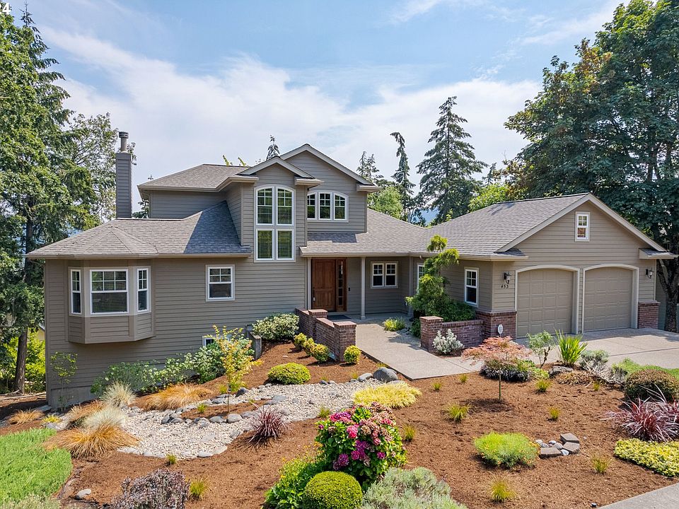 Open House Saturday 8/10 from 11a-2! Custom Designed, Contemporary Craftsman in SE Eugene with Stunning, Unobstructed Views! Tastefully appointed and built w/ uncompromising quality, this 1-owner home features exquisite wood detailing -- American Cherry cabinets & built-ins, clear fir doors & trim throughout (both old growth and new), newly refinished walnut floors, and solid hemlock staircase. As you enter, the dramatic foyer and Easterly views from the wall of windows will immediately captivate you. The spacious living room w/ gas fireplace insert and open dining w/ built-ins have French Doors leading to a deck that spans the entire length of the home to further enhance the view. The recently updated kitchen features new quartz counters, new sink & faucet, stainless appliances, pull-outs, gas range, ample cook space, pantry & skylights. The main level also has a full bedroom and bathroom w/ travertine & marble accents plus a convenient laundry room w/ sink. The entire upstairs is encompassed by the private, primary retreat with even more incredible views and a luxurious, spa-like bathroom w/ jetted tub, walk-in shower, dual vanities, tile accents and walk-in closet. The lower level features 2 more bedrooms (4th bed w/ slider leading to back yard could be family rm), another full bathroom, and approx 500 sqft of unfinished space that is perfect for storage or even expanding the living space. Outside, you will love the easy maintenance yard w/ native plantings, dry creek bed, water feature and irrigation. Other features include great separation of space, plaster walls, built-in vacuum, 3-zone central heating & A/C, oversized 2-car garage, room for extra parking and a wonderful, quiet neighborhood w/ common areas and walking trails. If timeless craftsmanship and epic views appeal to you, this one-of-a-kind home is a must see!