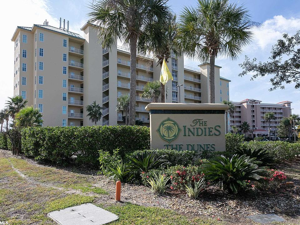 Enjoy the extensive views from this east end 3 bdrm 3 bath unit at The Indies. The unit comes fully furnished with new patio furniture and new master dresser and night stands and new water heater. All bedrooms have a connected full bath with tile floors and granite counters. The primary bath has a separate tub and shower. The living and dining areas are tile as well and the kitchen comes complete with stainless appliances, granite counters and breakfast bar. You have bay or Gulf views from every bedroom and the living areas in this entire condo. Plenty of parking in the lot and has a covered drive up entry for loading and unloading. A beautiful pool area and a rooftop sitting area with the Gulf views complete this great condo! Walk or ride to the deeded beach access in the community. Also a short walk, bike ride or drive to Fort Morgan and the ferry over to Dauphin Island. Property is in a vacation rental program and rental history for 2021/2022 is available and some future rentals are already on the books.