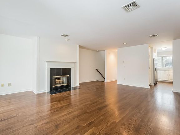 Pristine updated 2 bedroom, 2.5 bath townhouse featuring renovated kitchen with white cabinetry, stainless steel appliances, quartz countertops, and hardwood floors throughout. Spacious living/dining area with wood burning fp and deck off living room overlooking woods and rear of complex. Master bedroom features a cathedral ceiling and a stunning new master bath with soaking tub and separate shower. 2nd bedroom with ensuite of generous size. Underground parking for 2 cars (assigned) and an elevator to courtyard. In-town location one mile to train, waterfront park, minutes to shops, & restaurants.