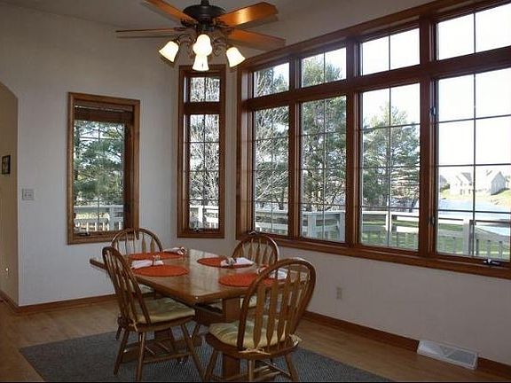 Enjoy peaceful surroundings in The Pines subdivision. Beautifully maintained open concept ranch home feels like new. Inviting great room has cozy fireplace and is open to the kitchen with breakfast bar. Pretty water views from living room, dinette and sitting room. Large master suite has walk-in closet and private bath. Finished walkout lower level offers family room, bedroom, kitxhentte, full bath,cedar closet and large storage area.