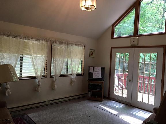 Country Contemporary home located on three wooded lots. Offers 3 bedrooms, 1.5 baths, eat in kitchen, living area with cathedral ceilings and tons of light, full basement, wrap around deck. All located in amenity filled community.