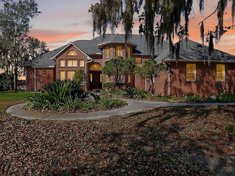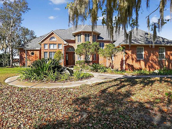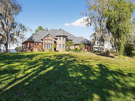 Beautiful and Serene estate home on the St Johns River! Direct Waterfront with long views of the St Johns River and afternoon sunsets. Situated on 5+ acres, this brick home boasts two master suites on the main level, both opening to private views of the river and separated by a large, screened lanai. The main living space features 14+ ceilings, large rooms for entertaining, and a chef's kitchen. The second level also with views from every room you will find the remaining bedrooms and office. The spacious grounds include a large pond and plenty of room for additional space, a pool, a summer kitchen, and anything your heart desires. Total Florida living lifestyle awaits!