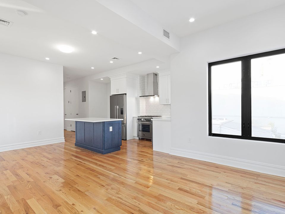 Gorgeous brand new 3 bedroom / 2 bath at the border of Prospect Lefferts Garden and Wingate. This is an apartment you will truly enjoy calling home.Be the first to live in this unit in a 2 family, owner occupied house that has undergone a complete gut renovation.When you enter the apartment, you will be greeted by the sunlight that fills the open-plan Living room/Kitchen/Dining Room.The kitchen is designed for the most discerning of home cooks, with white custom-made cabinets with blue accent,all high end stainless appliances including Viking dishwasher, deep kitchen sink, and a microwave that is nicely tucked in the kitchen island.The gas range is vented and there is also a window by the sink. There is one large bedroom with en-suite bathroom and two windows, and two smaller, equally sized bedrooms with a large closet.The bathrooms are as beautiful as the kitchen, featuring deep soaking tub and glass shower.The unit also has central heat and AC, controlled by the tenant, as well as in unit laundry with vented gas dryer. There is common shared roof space available as well with this apartment (yes, outdoor space!) This apartment is conveniently located near a subway station and all the shops you will ever need!Enjoy delicious food and drinks at Daleview Biscuits and Beer, Camillo, Salem's Hour, etc.No pets and no smoking allowed.Available immediately.
