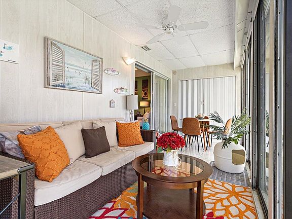 Welcome to your dream home in the highly sought-after 55+ community of Golden Lakes Village! This beautifully updated 1-story corner unit condo boasts 2 spacious bedrooms and 2 modern bathrooms, offering a perfect blend of comfort and style.Step into the sleek kitchen, complete with stainless steel appliances, ideal for whipping up gourmet meals. The expansive Florida Room, fully under air, provides a serene retreat with stunning water views, perfect for relaxation or entertaining guests.Golden Lakes Village offers an array of luxurious amenities, including 24-hour manned security at the guard gate for your peace of mind. Enjoy access to 2 clubhouses, heated pools, spa hot tubs, fully equipped gyms, and cozy cafes serving delicious breakfast and lunch options. The community is managed on-site, featuring a full-time Social Director who schedules a variety of exciting events, theatrical shows, and trips. Plus, residents benefit from a convenient courtesy bus service to shopping centers, doctor's appointments, and the mall.
