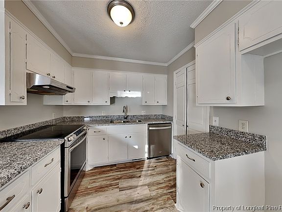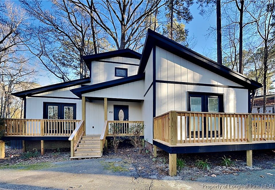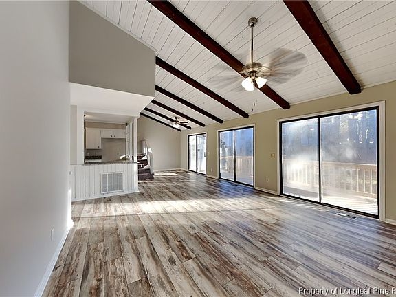 Welcome home to this adorable two bedroom two floor home in desirable Carolina trace gated community. This split floor plan is sure to please with the owners suite located on the main level and second bedroom located upstairs both rooms with private bathrooms. The living room, kitchen and dining room are both open to each other, which is great for entertaining. The living room has cathedral ceilings with exposed wood beams, luxury vinyl plank flooring and a freshly painted interior. The kitchen has granite countertops, light cabinets and stainless steel appliances. Outside of the living room enjoy a wrap around deck. You don’t want to miss this one, schedule your showing today!!