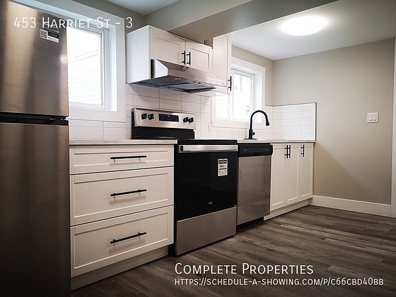 Beautiful Renovations Private Laundry Stainless Steel Appliances Dishwasher Open Concept Kitchen Lots of cabinet space Tile backsplash Quartz Countertops Spacious bedroom Double Closet Full bath with tile surround Top of the line, modern finishes $1195 + Hydro Parking available $50/month
