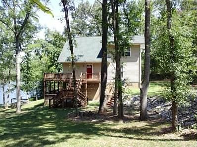 Live in Style at the lake in this 3 story lakefront home. Double Stacked Decks allow for plenty of indoor/outdoor living. The soaring wall of windows gives way to fantastic lake views & plenty of natural light in this very open floor plan. The loft/master suite w/sitting area offers expansive views as well from the wall of windows & lots of privacy. 1173+ SF unfinished basement w/plumbing roughed in & ready to go for an additonal bath and even a 4th bedroom with room to spare. French Doors from the basement leads to a large covered patio. Private pier and floating dock included. Serene, secluded setting offers the very best in Lake Living!