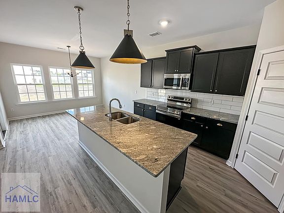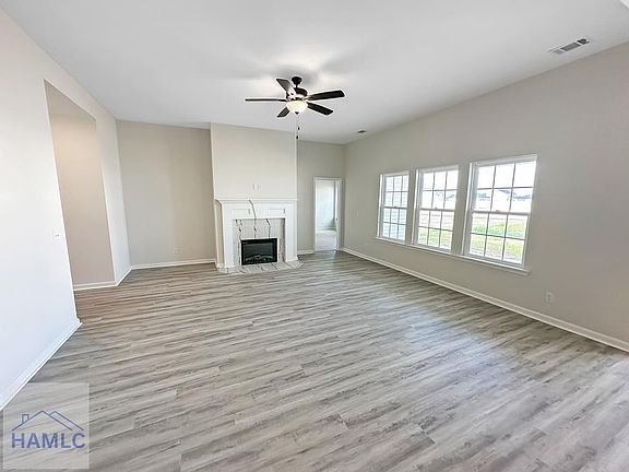 The Jackson plan in Doctor's Creek showcases a BRICK FRONT enhanced by low-maintenance vinyl accents. Upon entering, you'll find a warm and welcoming ambiance with an open and stylish design, highlighted by an electric fireplace that serves as the focal point of the great room. The kitchen features an appealing island layout, granite countertops, essential appliances, and a spacious corner pantry. The primary bedroom is more than just a peaceful retreat; it offers two walk-in closets, a linen closet, and a private bath equipped with both a separate tub and shower. Additionally, there is convenient access to the laundry room from the primary closet. The three extra bedrooms are positioned on the opposite side of this split floor plan, ensuring maximum privacy. Relax in the tranquil outdoors on the breezy, covered back porch that overlooks the large homesite. Artistic renderings are for informational purposes only, and actual floor plans and features may vary.