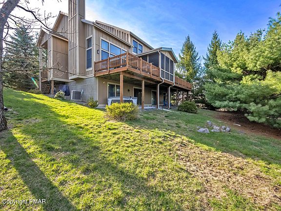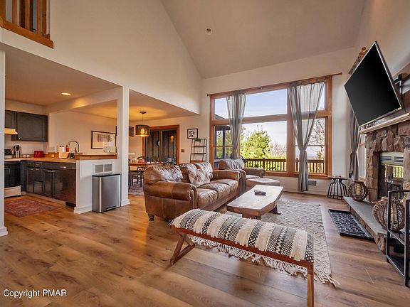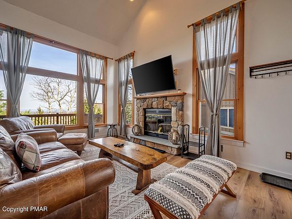Situated in the beautiful Pocono Mountains, this large townhome welcomes you with the most amazing views of Camelback ski area and the surrounding mountains. With spacious living areas perfect for entertaining, cozy fireplace, kitchen w/butcher block counters and stainless steel appliances. Adding to its allure, this townhome features a walk out basement, providing access to relax in the private hot tub. Step out onto the expansive deck with screened in area to breathe in the fresh mountain air. Whether you're drawn to the breathtaking views, the spacious interior, or the allure the walk-out basement, this townhome promises to be an unforgettable escape to serenity.