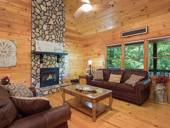 You will fall in love with this warm and inviting cabin located in the Coosawattee River Resort! Just minutes from the river, this home offers 3BR/2BA plus a large loft! The open floor plan offers an open great room, kitchen and breakfast area with wood floors, a beautiful stone fireplace, gorgeous brand new quartzite counter tops in the kitchen and access to two covered rocking chair porches! The main floor has a spacious bedroom and bath which also has the new quartzite counter tops. The upper floor offers another spacious bedroom, private bath, and a loft. The basement has a finished bedroom, drive under garage and extra space for future expansion. This cabin is situated on a private corner lot with easy access to the main gate and amenities! This home would make the perfect mountain getaway, full time home or great rental investment! The Resort offers, swimming pools, tennis courts, river access, gated security, exercise facility, game room, walking trails and more!