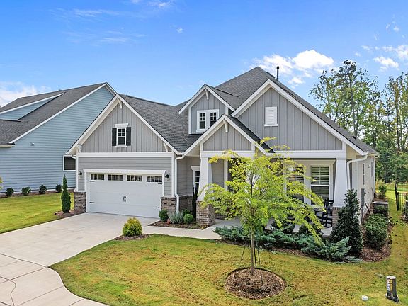 Be ready to fall in love when you step into this Encore home loaded with upgrades! Meticulously maintained & designed with style. Green tree views from the living room, screen porch & owner's suite. Kitchen features huge island of white quartz, perfect for entertaining! Walk-in-pantry, tons of counterspace, gas range, stylish pendant lights, tile backsplash & recessed lighting. The party flows into the elegant dining room & living room with its stunning stone-clad corner fireplace. One-level living means a spacious owner's suite is around the corner, and offers a spa-inspired tile bath. Work-from-home? A sunny office is the perfect spot with natural light, french doors & custom built-in bookshelves. Garage has an epoxy-coated floor & extra storage space for bikes & garden tools. The feature list continues with 10 ft. ceilings, 8 ft. doors, crown molding, security system, keyless entry, Nest thermostat, custom wood shutters, rear grilling patio and more! Enjoy the Encore Lifestyle Club with pool, clubhouse, & activities or visit your friends at the nearby Briar Chapel pool club or meet up at the pickleball courts!