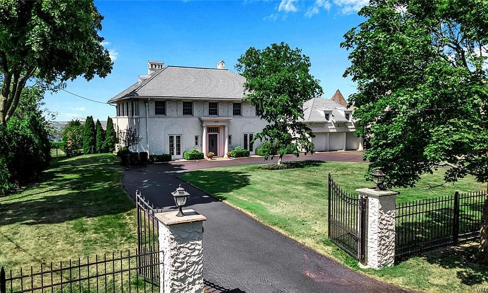 Stunning water views of Canada, The Niagara River, Lake Ontario and Toronto are one the many features of this impeccably kept residence in Lewiston. Beautiful LR with a 2 sided fireplace (NRTC), beamed ceilings, parquet wood floors and a cosy alcove opens through french doors to a solarium with sweeping lawns and gardens and an in-ground pool. Updated fully applianced eat-in gourmet kitchen, gracious DR with large walk-in pantry. Master suite has updated full bath, dressing room and fireplace (NRTC). 3 more bedrooms and another updated bath complete the 2nd FL. Finished 3rd floor boasts 2 more rooms and an updated full bath. The basement has a media room, an exercise room, a wine room, a large laundry area and loads of storage. The property includes a 3 car heated garage and carriage house with updated kitchen and full bath, 1 bedroom, a LR/Dining area. Great in-law and guest space. Well manicured grounds include a flagstone terrace, a new Gazebo, fully fenced yard and an in-ground pool. Solid mechanics, 30 minutes to downtown Buffalo, the Village of Lewiston and close to Canada makes this property so versatile.