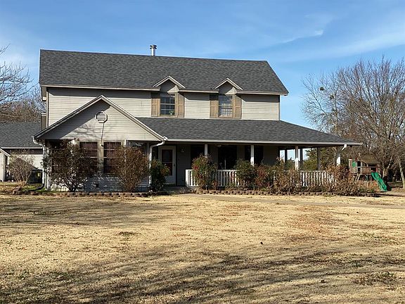 Enjoy beautiful sunsets & sunrises from wrap around porch in this storybook setting. Country living with No city taxes, No HOA & quick access to city & all major thoroughfares. Quiet neighborhood beautifully landscaped 1.5 acreage, plenty of room for gatherings with family & friends. 3bedroom 2.5 bath & a study. Fabulous home with tons of storage inside & out. Spacious detached 3 car garage. Abundance of fruit trees on the property. Wood burning stove surrounded by gorgeous river-stone will heat the entire home. Home features beautiful hardwood floors, tiles & carpeting was just installed. Upstairs bathroom completely remodeled. Large concrete parking area between home and garage. 2 wells on property.