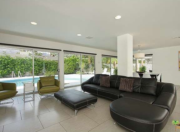 This remodeled mid-century home has it all, a place to play, a place to cook, a place to rest. Play in your pool with Western mountain views, cook in your mini gourmet kitchen or barbecue on your slate patio or rest in one of the four spacious bedrooms. Four bedrooms, two and one-half baths make up 2492 square feet of great living space. This home boasts a bonus room, two fireplaces, 18 by 18 porcelain tile floors, dual sinks in the master bath,Viking and Westinghouse stainless appliances, Caesarstone counters and glass tile backsplash in the kitchen. There is a covered patio off the bonus room that looks over a newly refurbished pool. Whether your getaway or permanent home in the desert or used as a vacation rental, it has it all.