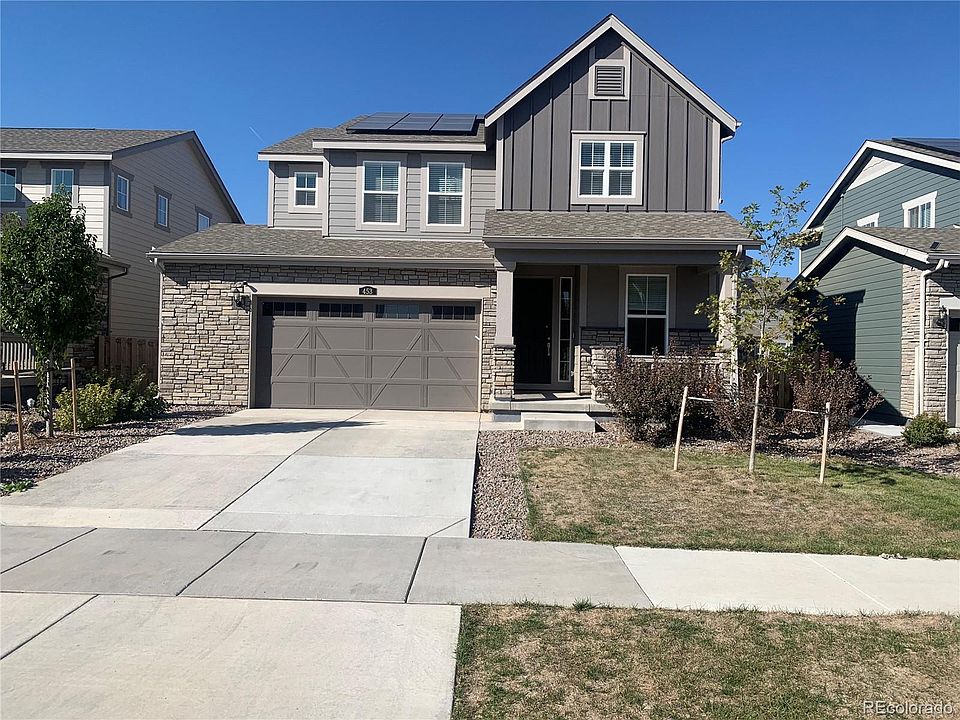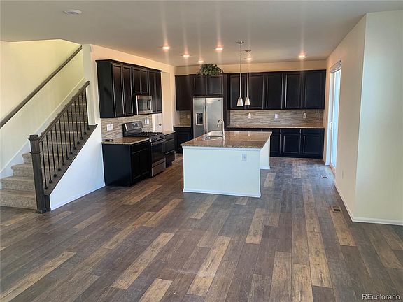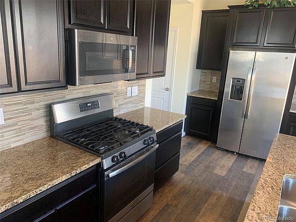 Welcome home to this better than new 2 story home in desirable Adonea. Beautifully finished w/ function & design in mind, this lovely home features an open floor plan filled w/ abundant natural light. The main floor features luxury vinyl plank throughout most of the main level as well as a ½ bath. The spacious great room is open to the gourmet kitchen, perfect for entertaining. The gourmet eat in kitchen has been finished w/ granite countertops & offers an island for additional seating. Glass tile backsplash, stainless steel appliances, gas stove. Don't miss the large pantry, great for additional storage. Refrigerator is included. Upstairs has 4 bedrooms along w/ a shared bath w/ dual sinks, along with an upstairs laundry room(washer/dryer included). The spacious master bedroom features private 4pc bath w/ walk in shower & large walk-in closet. You will love to entertain outdoors. You will love fun times w/ family & friends. The oversized 2 car garage is finished & insulated & offers room for additional storage. The full unfinished basement is terrific for future finishing & has plenty of space for an additional bedroom & recreation area. The opportunities are endless. Located just minutes away from DIA with easy access to I-70 and E-470. Wonderful community with several parks, community pool & clubhouse. Buyer and buyers agent to verify all information provided in the MLS, all information is deemed accurate but not guaranteed.