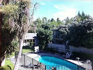 Top floor, end unit in quiet part of complex overlooking greenbelt. Open floorplan w/balcony storage. Great schools. Convenient to freeway, shopping, & downtown Mt View.