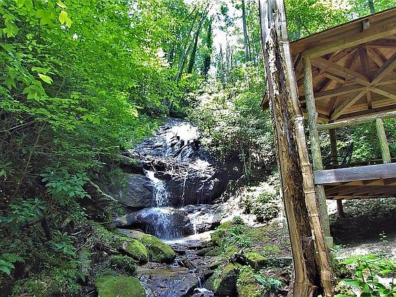 Waterfalls, stream, pond, gazebo, trails ,views and rustic cabin all on 36 peaceful acres at a cool 3,000 feet elevation with easy, paved access to the driveway. Listen to the waterfall from your front porch while you watch the kids fish the pond for brim and trout. This is western North Carolina mountains at its best. A very special property. Build your dream house while staying in the cabin then use cabin as guest house or build additional cabins as rental investment. Due to 37% percent average slope, each residence must have minimum 2.5 acres.