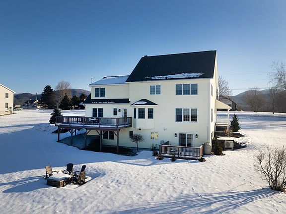 Sitting proud on an impressive acre lot, taking advantage of east and western mountain views, is a custom, five bed, four bath colonial style home built in 2001 by one of our most talented builders. A vaulted front entry with a custom palladium window and gleaming wood floors show off the quality of the home. Capturing stunning mountain views from almost every window and sunsets from two decks is lovely. Enjoy two formal rooms for entertaining and your everyday living; you will cherish the beautiful open kitchen-family room space. Handsome cabinetry enhanced by granite counters, stylish backsplash, and new stainless appliances is a true luxury. The adjacent family room hosts a gas stove for those winter nights and mini split for summer comfort. A first-floor bedroom with a full bath is a tremendous asset to the home. The second floor hosts new hickory wood flooring, and an open balcony to the front hallway adds style. The oversized primary bedroom suite has an updated bath: two other family bedrooms, a full bath, and a second-floor laundry room. The bonus room down the hallway can be anything that suits your family's needs. In addition, the home features an in-law apt., a private deck facing west for outdoor enjoyment. Open floor plan, kitchen, large bedroom, full bath, and laundry, making this a wonderful place for a family member, Nannie, or guest quarters. Steps away from Proctor Pittsford Golf course, skiing, and lake region. Energy efficient. Tesla batteries. Fire Pit!