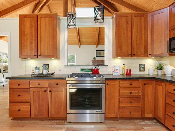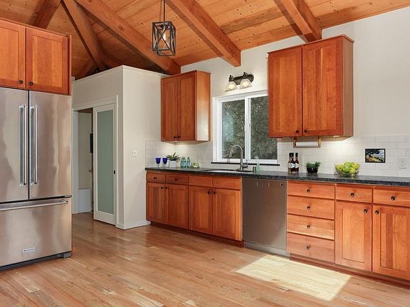 This quiet retreat can be your Corralitos getaway property, plus a setting for small and large gatherings with exceptional open parking besides garaging five cars. Two usable acres surround this incredibly renovated home. Such wonderful qualities- huge remodeled kitchen, custom lighting, new fireplace, automatic skylights (they close if they detect rainfall), beautiful tan oak hardwood floors installed by the man who sustainably harvested the trees and milled the wood, new Brazilian Ipe deck with stainless steel railings, new furnace, air conditioner, lifetime roof, owned solar electric, Hardie board siding, deer-fenced garden, and more. Step down from the main living areas into the nicely separated bedroom/bathroom wing. The master bedroom brings in the light, as does the master bath- from which you can step out onto the deck to greet the morning sun. Just minutes from the popular Corralitos Market.