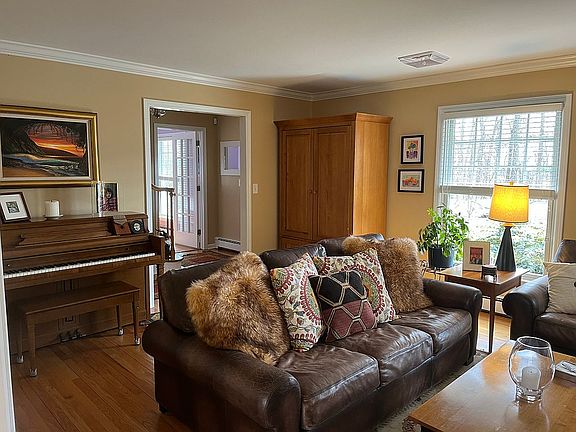 • Crown molding, mahogany front door, pocket doors in dining room, several glass doors and a dutch door in the kitchen.