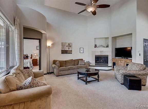 Remarkable home in a private gated community! You'll love the open floor plan, high ceilings and large windows that bathe the home in natural light! A spacious open kitchen is complete with beautiful cherry cabinets, slab granite countertops, tile backsplash, stainless steel appliances and a gas stove! The massive finished basement - with its huge rec room and sleek granite dry bar - is perfect for hosting awesome parties! The large master bedroom has a private patio entrance, splendid bay window, expansive 5-piece bath and huge walk-in closet! Gorgeous low maintenance artificial turf (you'll think it's grass) and a fabulous English garden set an amazing scene! The spectacular covered stamped concrete patio has a remote controlled retractable awning that provides even more shade for those hot, summer days! Neighborhood backs to hiking trails offering stunning views of the Rocky Mountains! The nearby park is perfect for the kids and provides a ballpark, roller rink and playground!