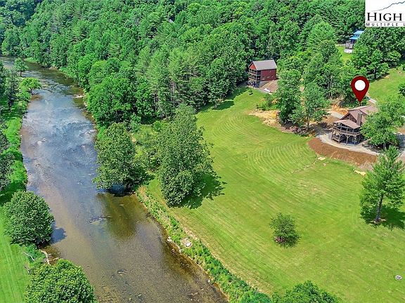 Experience the perfect blend of natural beauty and comfortable living in this charming mountain-style home, just 15 minutes from the vibrant towns of West Jefferson and Lansing. Enjoy local breweries, shops, restaurants, parks, and more, all within a short drive. This delightful home features large windows that capture picturesque views of the river and surrounding mountains. With private river access and over 160 feet of New River frontage, you'll love the serene setting as you watch the rolling river pass by, see the kids playing from the front deck, or spot deer enjoying apples from the nearby tree. The main level offers an open living floor plan with a spacious kitchen that flows into a cozy great room with a wood-burning fireplace. The adjoining dining area opens to a large, covered porch, which can be screened for comfort and offers plenty of outdoor seating and dining space. On this level, two bedrooms share a full-size bathroom and a convenient laundry closet. Upstairs, the loft area includes an inviting primary suite and a large bathroom with a relaxing whirlpool tub. The lower level features a versatile theater room, perfect for an 80" TV or projector, and two flex rooms ideal for an office or workout space. The family room includes another wood-burning fireplace and walkout access to the lower deck, beckoning for a hot tub. There's also a third bathroom with a walk-in shower for added convenience. The outdoor spaces extend your living area with a massive yard, perfect for setting up a firepit, playing corn hole, or enjoying a croquet game with the family. The exterior has been recently stained, and a new well pump and pressure tank were also recently added. A common area on the New River is just around the bend, making it ideal for a short river tubing trip from your backyard. Experience the charm and tranquility of riverside living. Schedule your private tour now and envision your dream life by the water! Smart Home lighting system by Lutron.