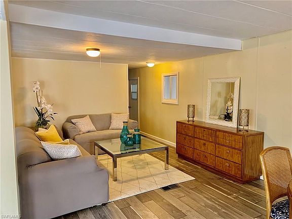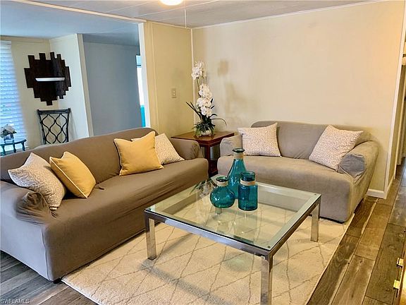 BRING OFFERS!!! FURNISHED!! PRICED TO SELL!! This is Riviera Colony, a charming 55+ community where YOU OWN THE LAND . Spacious open floor plan home with every room under air cooled by a Large NEWER Lennox AC unit with a 200 Amp breaker box. Large lanai and Plenty of additional storage in the shed that houses your washer and dryer. Kitchen has solid wood cabinets, tile counter tops, stainless dual sink. All new modern windows. New Wood large plank flooring, Tiled Dens and Lanai, updated baths and Newer Stainless Appliances. Vinyl Siding and Neatly skirted. LOW FEES OF ONLY $266.00 A QUARTER!! Enjoy the community pool and all the social events at the clubhouse. Golf at the Executive style PUBLIC GOLF Course at Riviera which is Pay to Play!! Close to Publix and only 10 min to downtown Naples!! CALL ME ABOUT FINANCING!