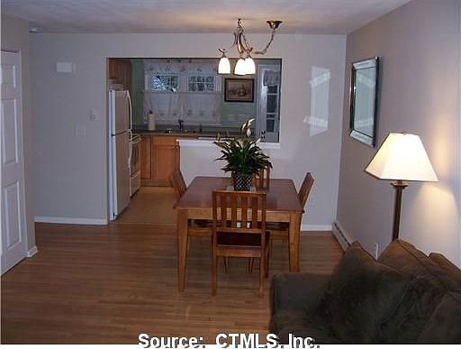 Excellent condition end unit townhouse! Open & bright flr plan. Newer kitchen, windows & full bath. 2 BR,fully finished LL FR. Great closet space, own laundry & 2 assgnd parking spots. Private country setting. Conv. to New Haven/Hrtfd. Agent/owner related