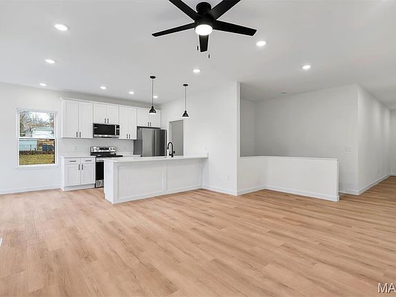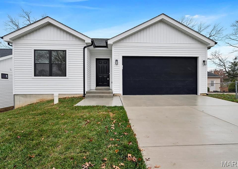Move-in Ready New Construction in Ballwin! Discover modern living at its finest in this stylish, newly built 3-bedroom, 2-bath home available for immediate occupancy. Designed with both comfort and curb appeal in mind, the exterior features low-maintenance white vinyl siding, striking black-trim windows, matching gutters and downspouts, and an inviting contemporary aesthetic. Step inside to 9-ft ceilings and an open-concept layout enhanced by luxury vinyl plank flooring, quartz countertops, soft-close cabinetry, and sleek black hardware and fixtures. The kitchen shines with stainless steel appliances and thoughtful spot lighting, while the cozy fireplace anchors the main living space. An oversized 24' x 18' two-car garage with an 8-ft door provides ample room for vehicles, storage, or hobby space. Enjoy added privacy and relaxation with a backyard that opens to a park—an ideal setting for outdoor enjoyment. Located in the highly sought-after Parkway School District. This exceptional property blends style, convenience, and modern comfort. Don’t miss your chance to make it yours!
