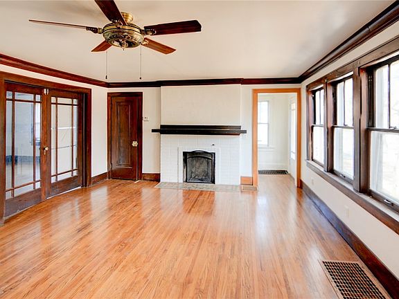 Hard wood floors on main floor . French doors. Fireplace with beautiful tile from its era .