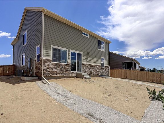 Welcome home! This gorgeous 5 bedroom, 4 bath home features an open floor plan that is perfect for entertaining. The spacious main floor has a guest room with bath and an office. Enjoy privacy and sunset views from the backyard of this perfectly situated Clear Creek model built by Meritage backing to a greenbelt and across from the neighborhood park. Countless upgrades abound in this energy smart home: engineered hardwood floors, stainless steel appliances, gas stove, Quartz countertop with center island overlooking the great room. Included are ring door bells, LED lighting, spray foam insulation, programmable thermostats, tankless hot water heaters. Open concept living with an eat-at kitchen island, overlooking the bright dining and great rooms. The private master suite features a large walk in closet. The upper level offers a relaxing loft and convenient laundry room. The full basement is finished with a Recreation room, bedroom and bath. The home has a three car garage and fenced backyard. East Creek is conveniently located with easy access to DIA and downtown Denver. The surrounding area is full of open space and great shopping. This energy efficient home will help you live a healthier and quieter lifestyle while saving thousands on utility bills.